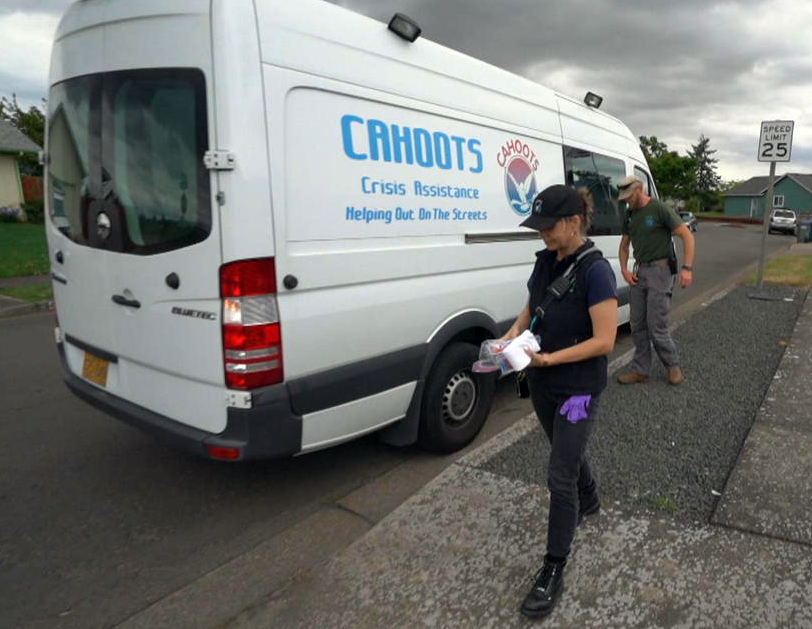 A CAHOOTS van with its two staff, operating in Eugene, Oregon.